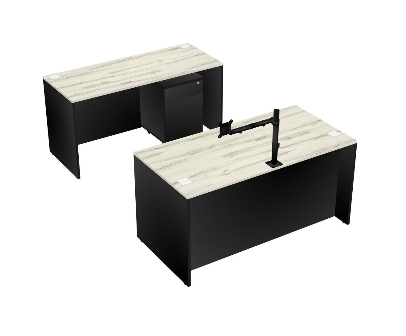 Office Parallel Desk Credenza Desk + Wooden Mobile Drawers + Monitor Arm (single Arm)