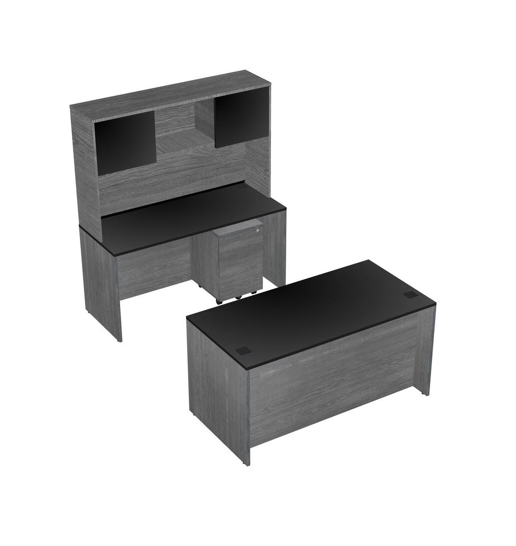 Office Parallel Desk Credenza Desk + Wooden Mobile Drawers + Hutch
