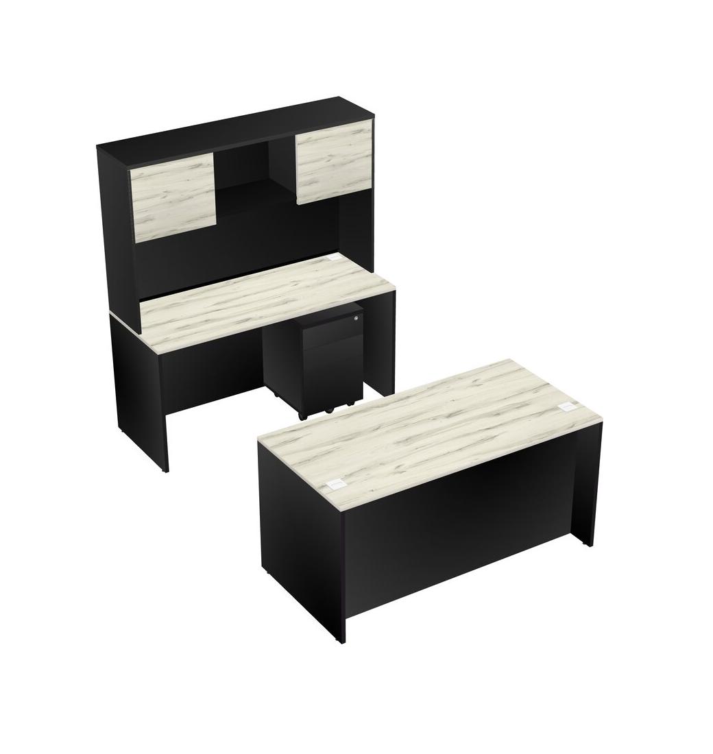 Office Parallel Desk Credenza Desk + Wooden Mobile Drawers + Hutch