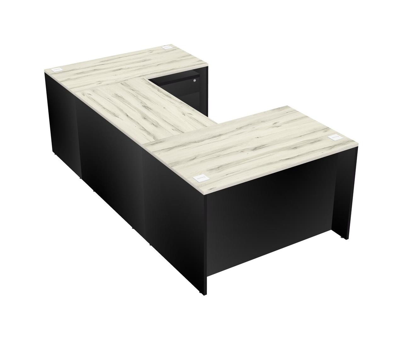 Office U-shaped Desk Credenza Desk + Wooden Mobile Drawers