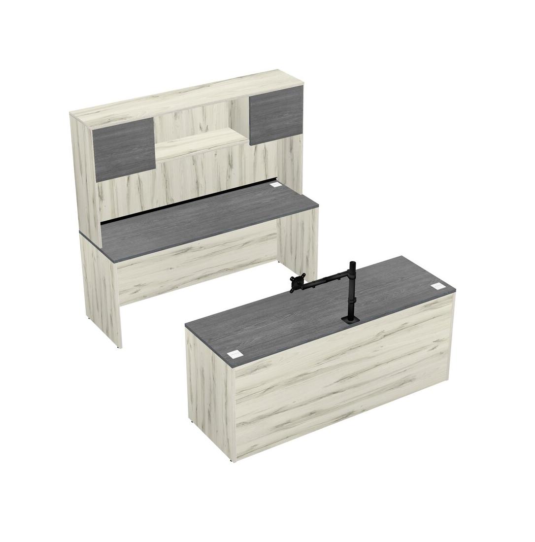 Office Parallel Desk Credenza Desk + Hutch + Monitor Arm (single Arm)