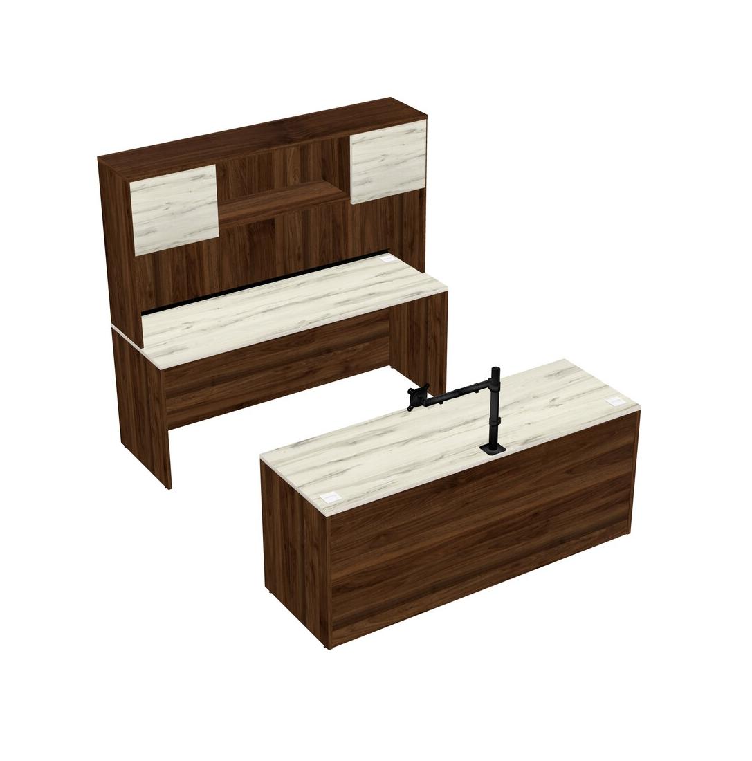 Office Parallel Desk Credenza Desk + Hutch + Monitor Arm (single Arm)