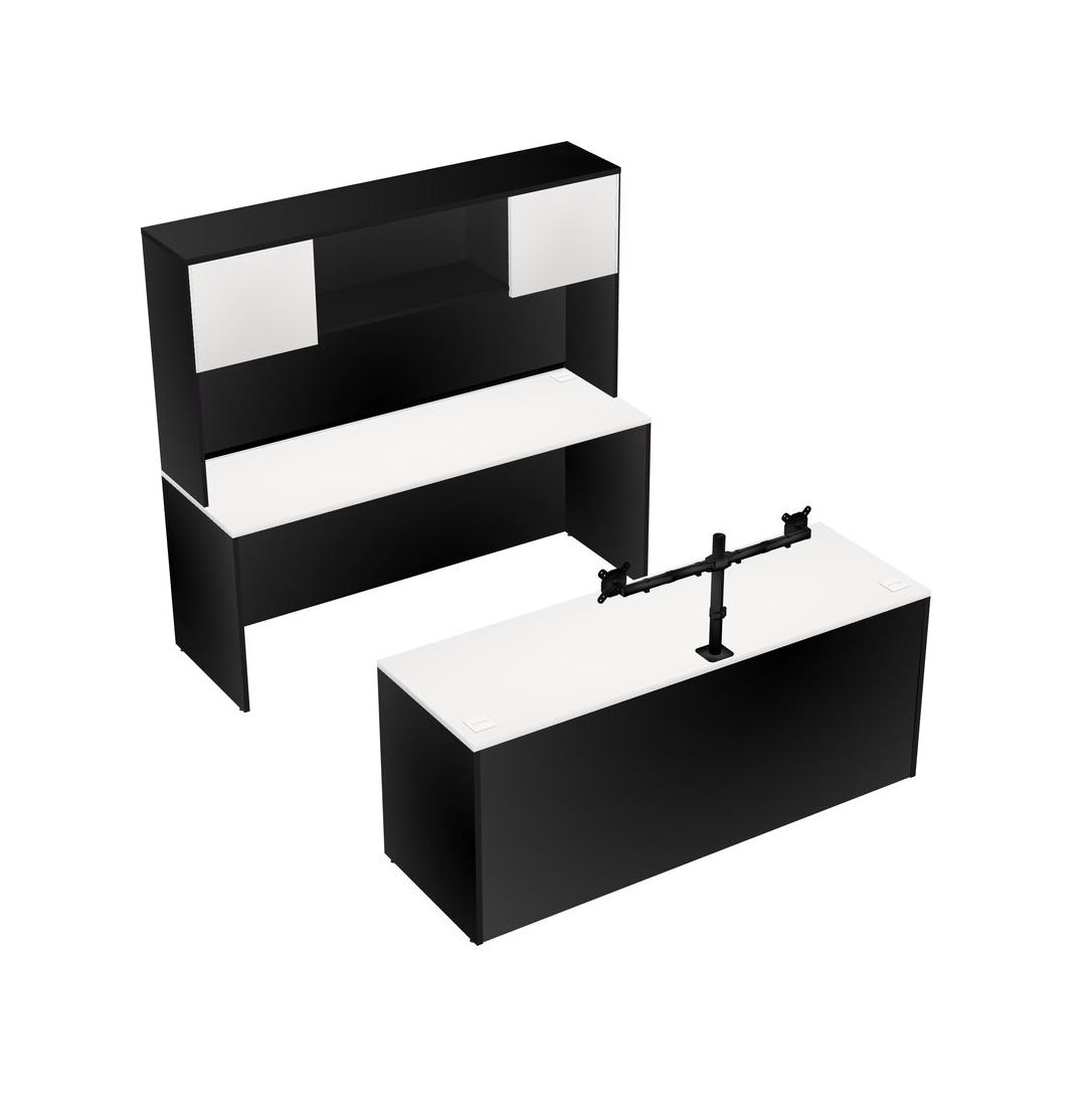 Office Parallel Desk Credenza Desk + Hutch + Monitor Arm (double Arms)