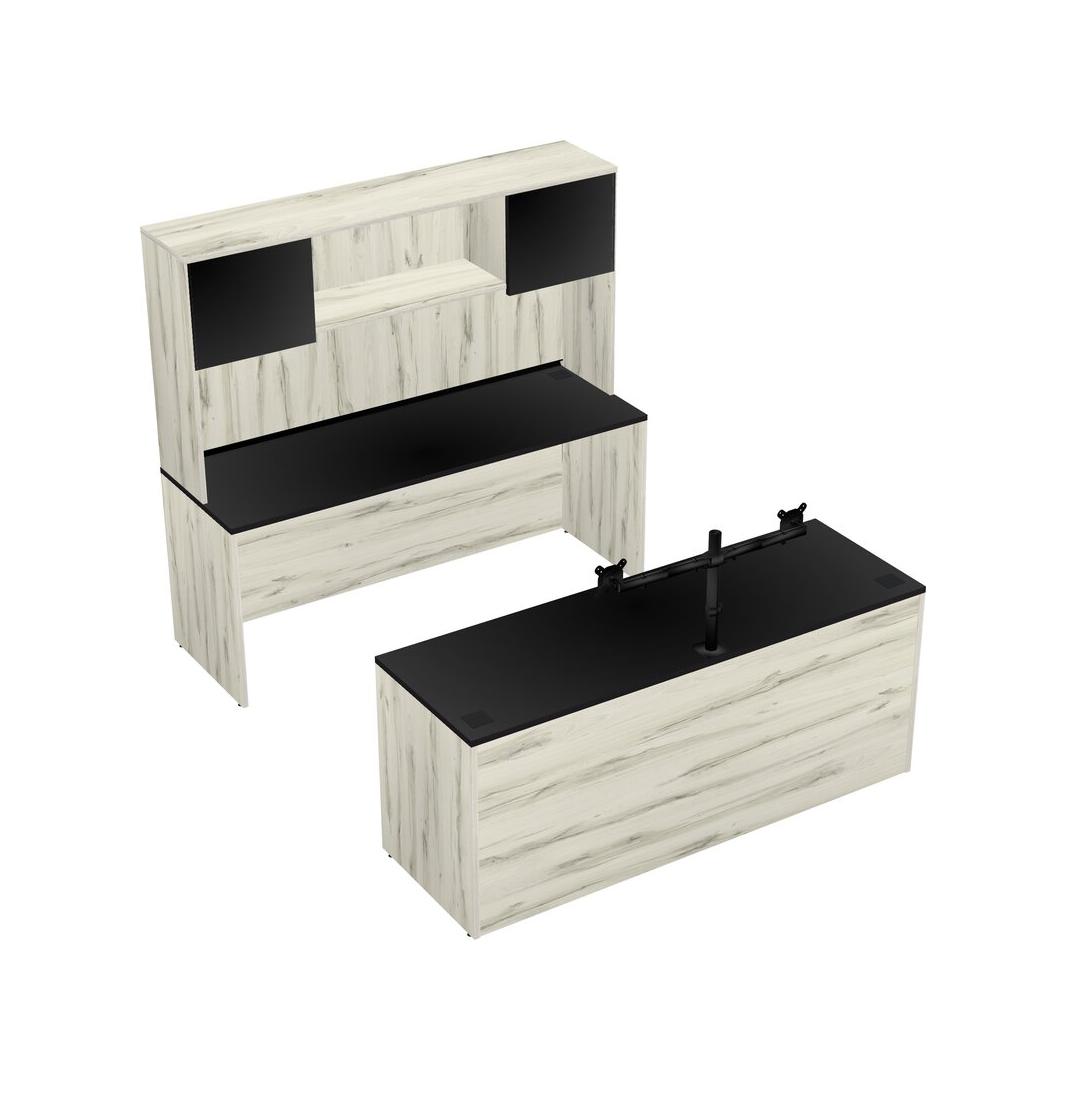 Office Parallel Desk Credenza Desk + Hutch + Monitor Arm (double Arms)