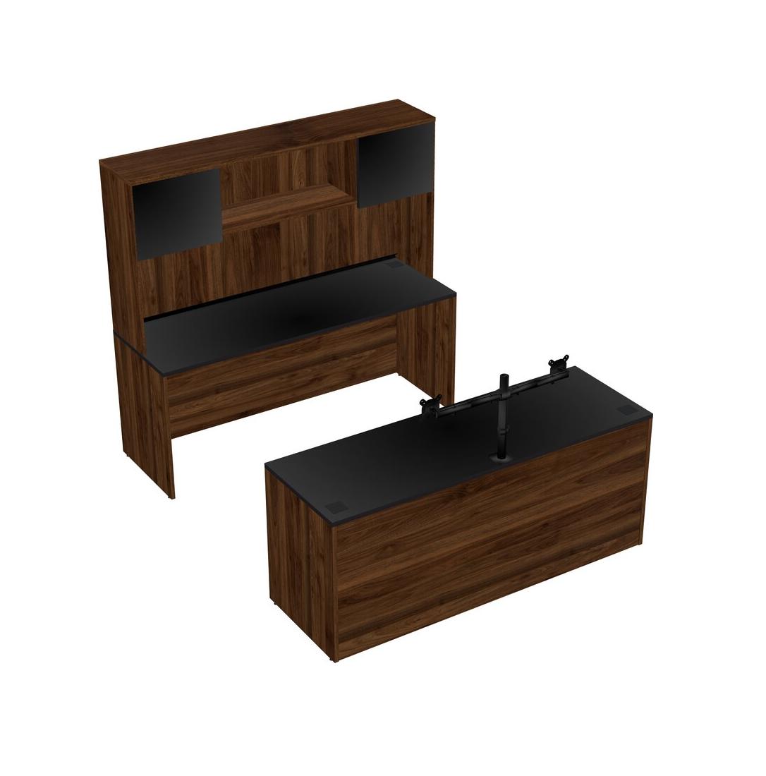 Office Parallel Desk Credenza Desk + Hutch + Monitor Arm (double Arms)