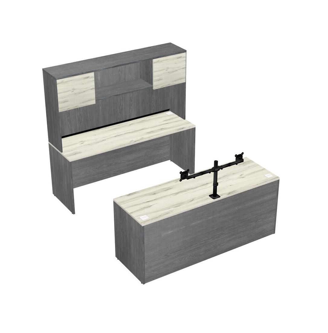 Office Parallel Desk Credenza Desk + Hutch + Monitor Arm (double Arms)