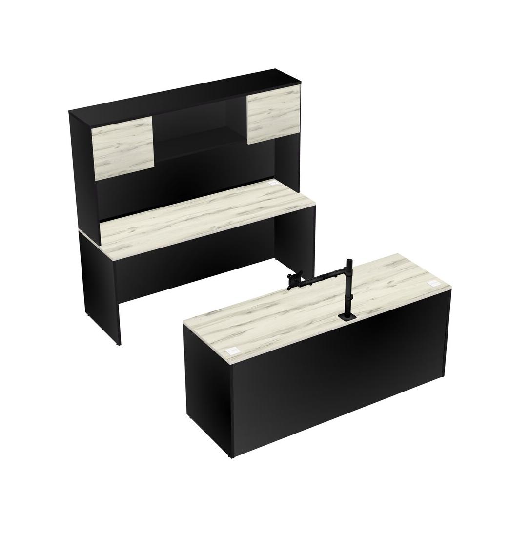 Office Parallel Desk Credenza Desk + Hutch + Monitor Arm (single Arm)