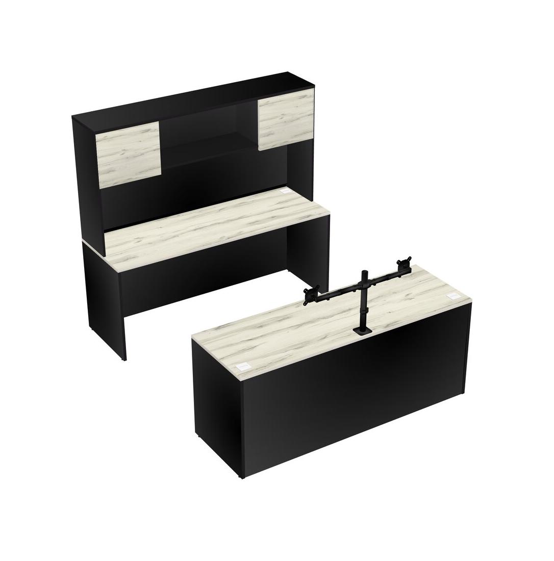 Office Parallel Desk Credenza Desk + Hutch + Monitor Arm (double Arms)