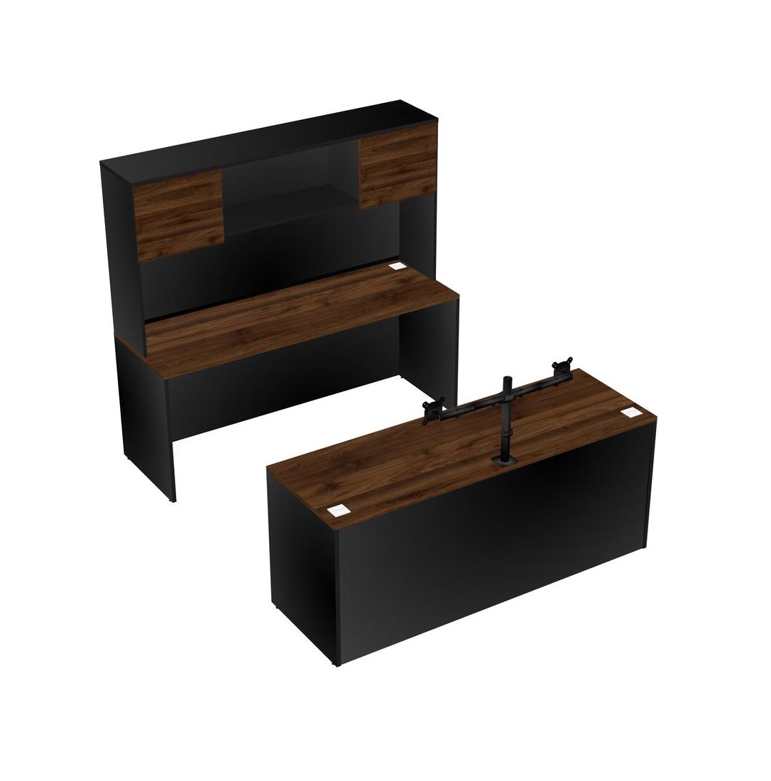 Office Parallel Desk Credenza Desk + Hutch + Monitor Arm (double Arms)
