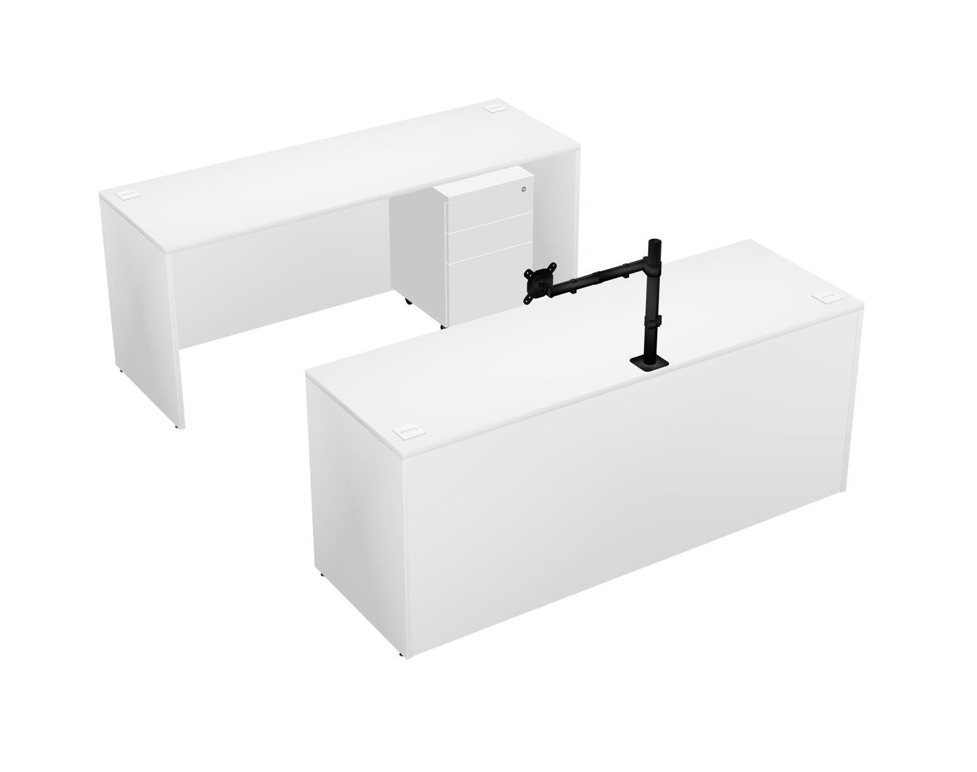Office Parallel Desk Credenza Desk + Wooden Mobile Drawers + Monitor Arm (single Arm)