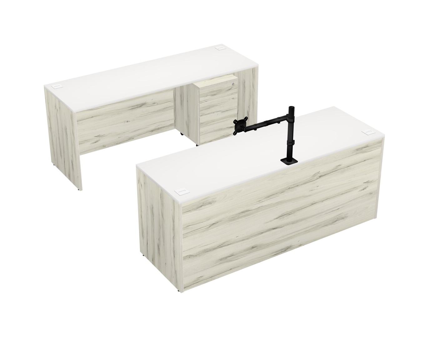 Office Parallel Desk Credenza Desk + Wooden Mobile Drawers + Monitor Arm (single Arm)