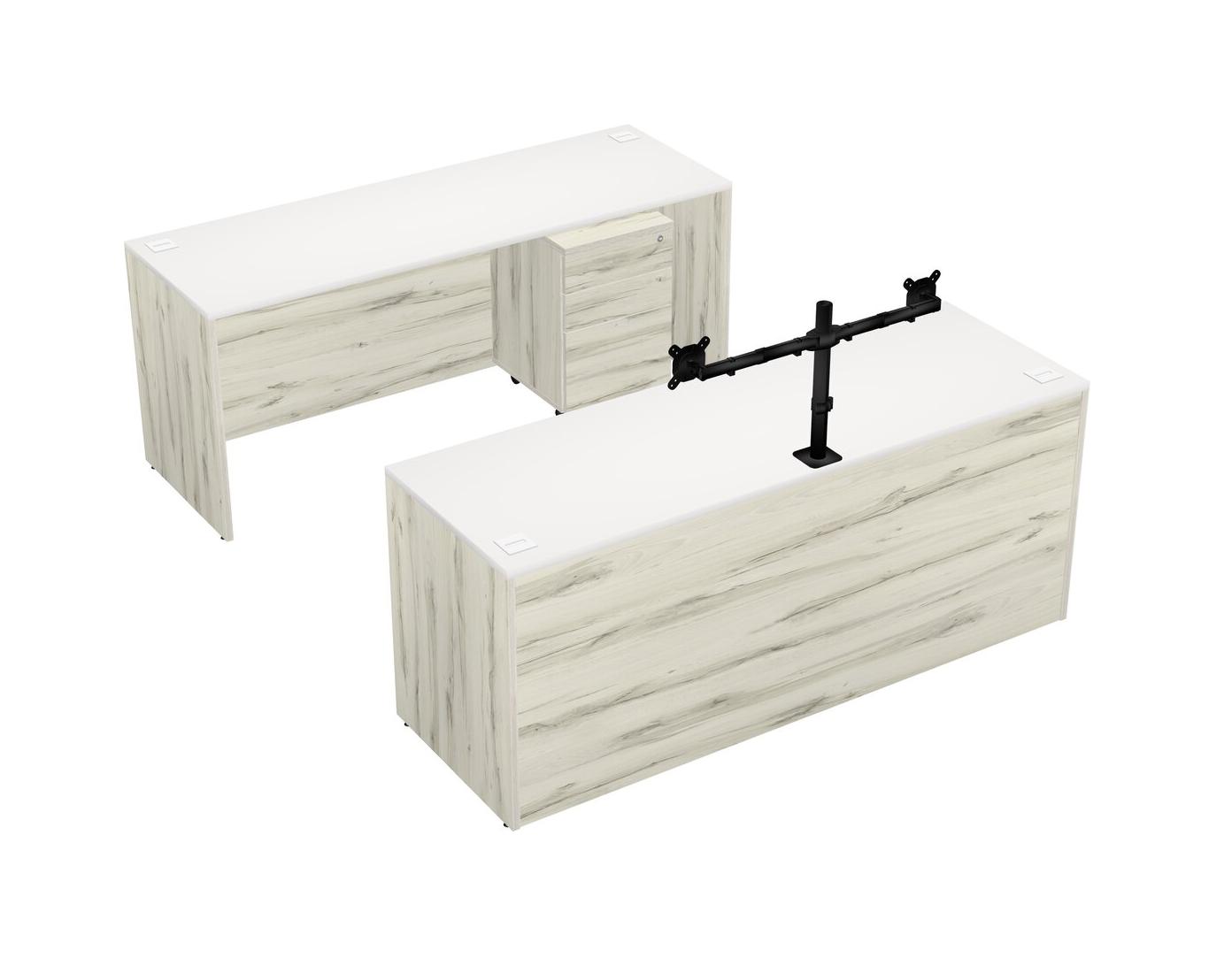 Office Parallel Desk Credenza Desk + Wooden Mobile Drawers + Monitor Arm (double Arms)