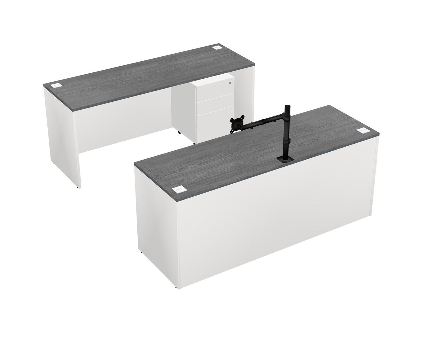Office Parallel Desk Credenza Desk + Wooden Mobile Drawers + Monitor Arm (single Arm)