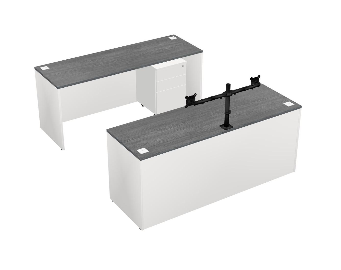 Office Parallel Desk Credenza Desk + Wooden Mobile Drawers + Monitor Arm (double Arms)