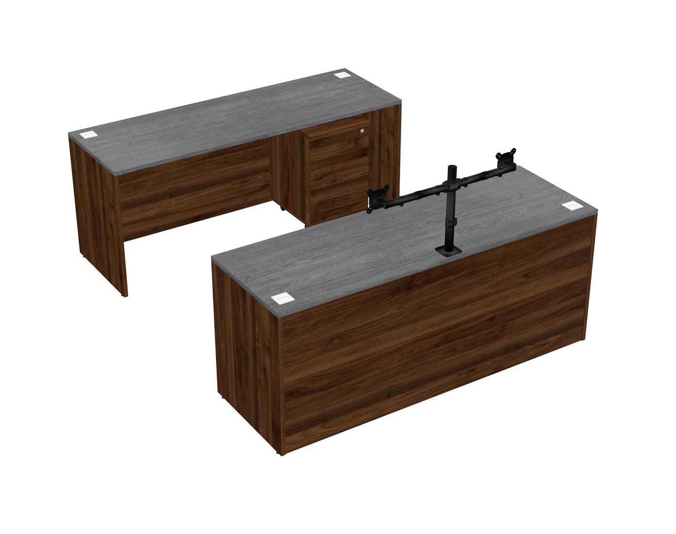 Office Parallel Desk Credenza Desk + Wooden Mobile Drawers + Monitor Arm (double Arms)
