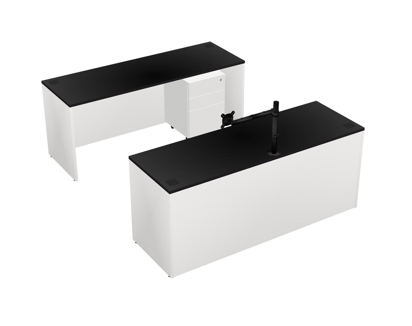 Office Parallel Desk Credenza Desk + Wooden Mobile Drawers + Monitor Arm (single Arm)