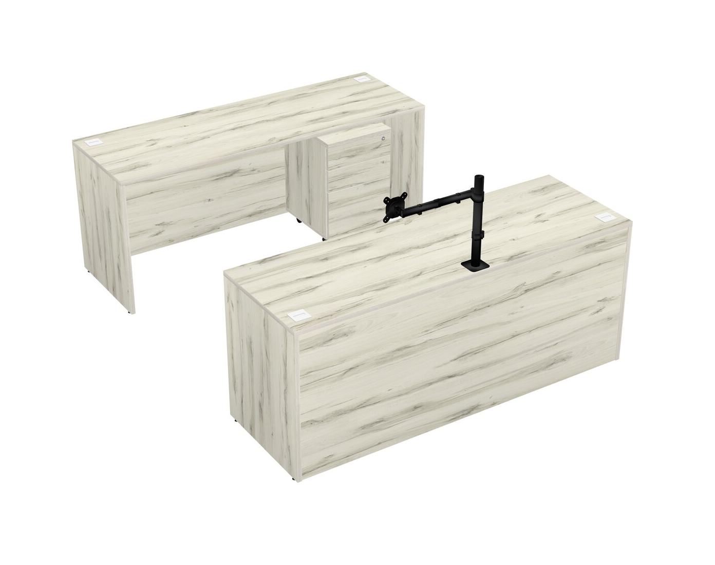 Office Parallel Desk Credenza Desk + Wooden Mobile Drawers + Monitor Arm (single Arm)