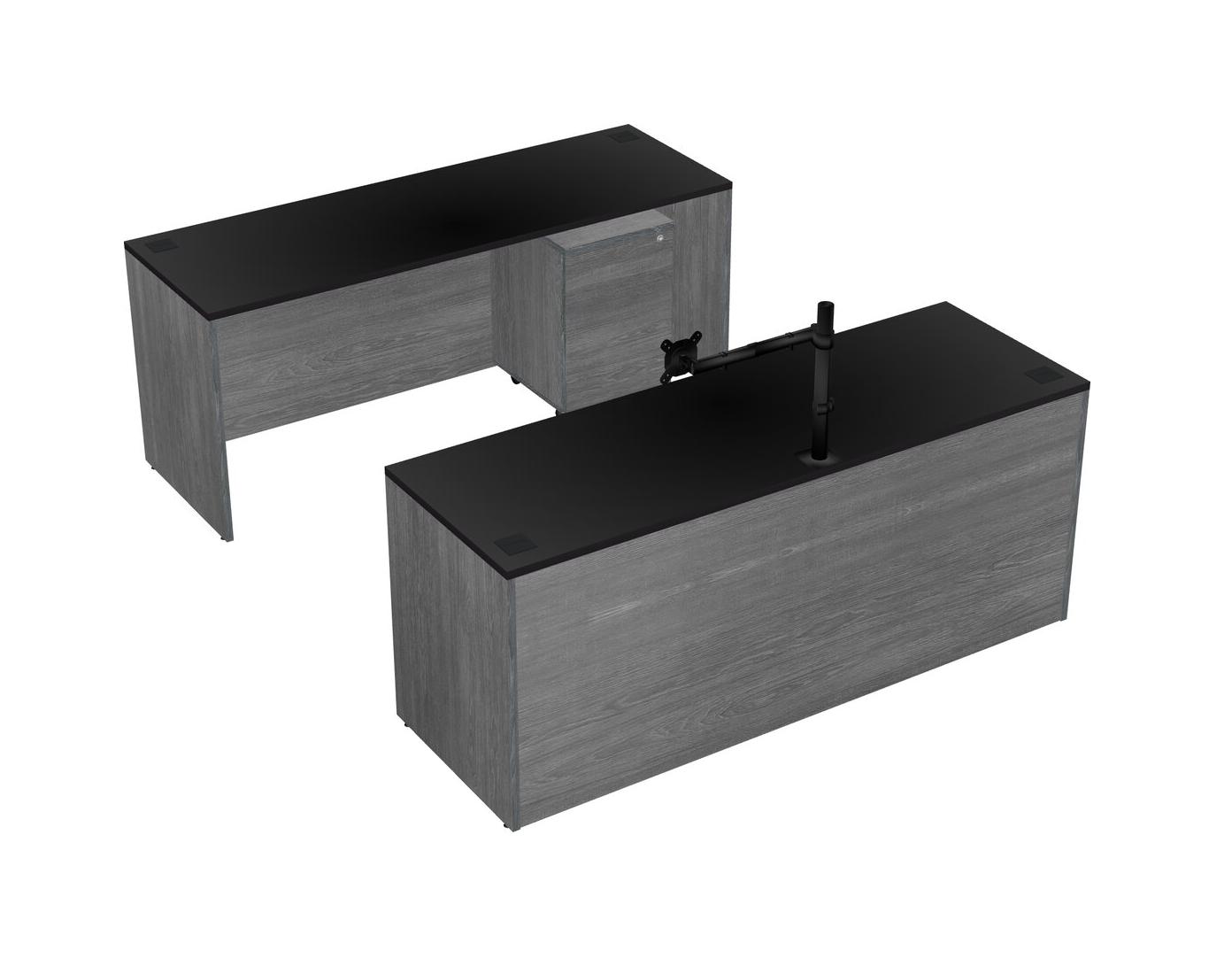 Office Parallel Desk Credenza Desk + Wooden Mobile Drawers + Monitor Arm (single Arm)