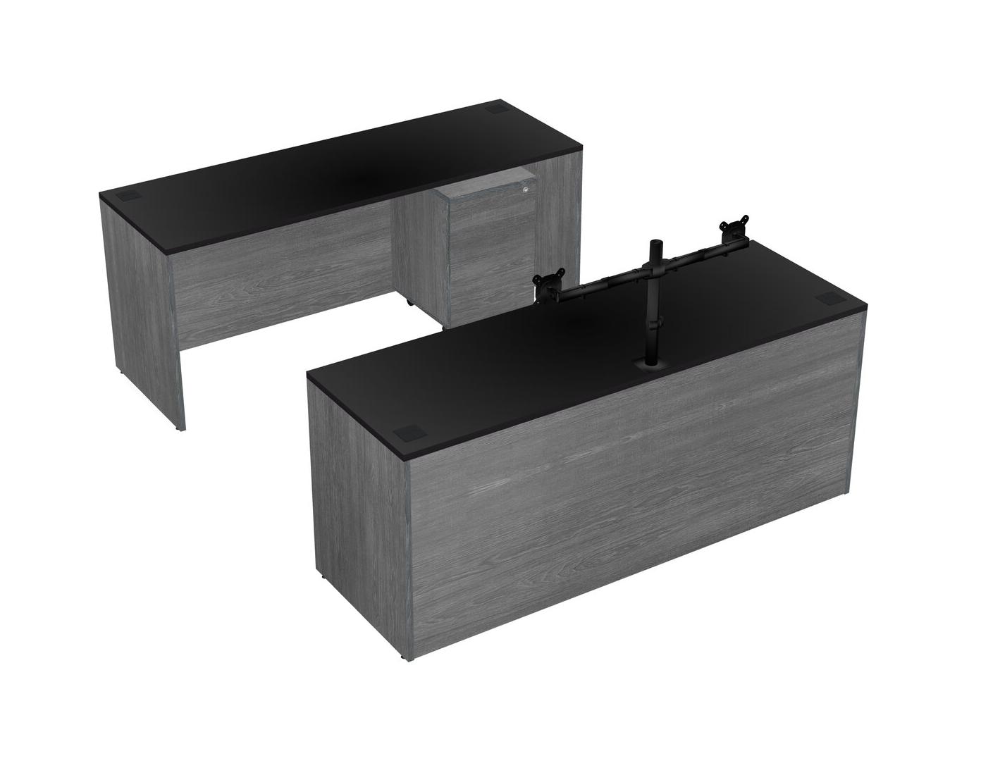 Office Parallel Desk Credenza Desk + Wooden Mobile Drawers + Monitor Arm (double Arms)