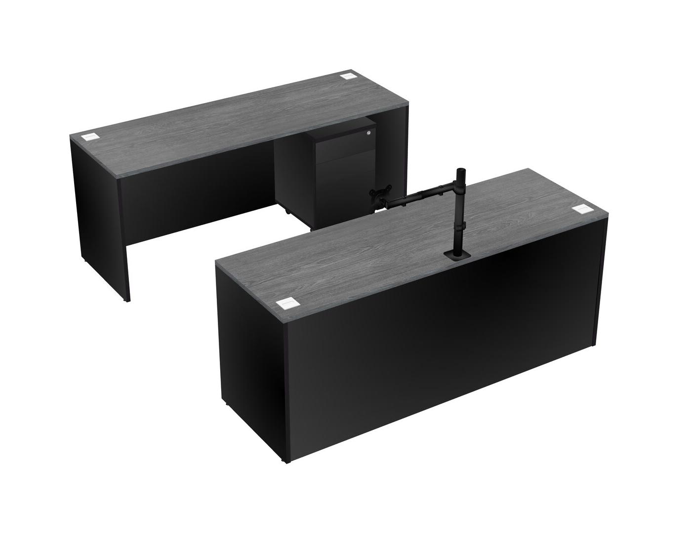 Office Parallel Desk Credenza Desk + Wooden Mobile Drawers + Monitor Arm (single Arm)