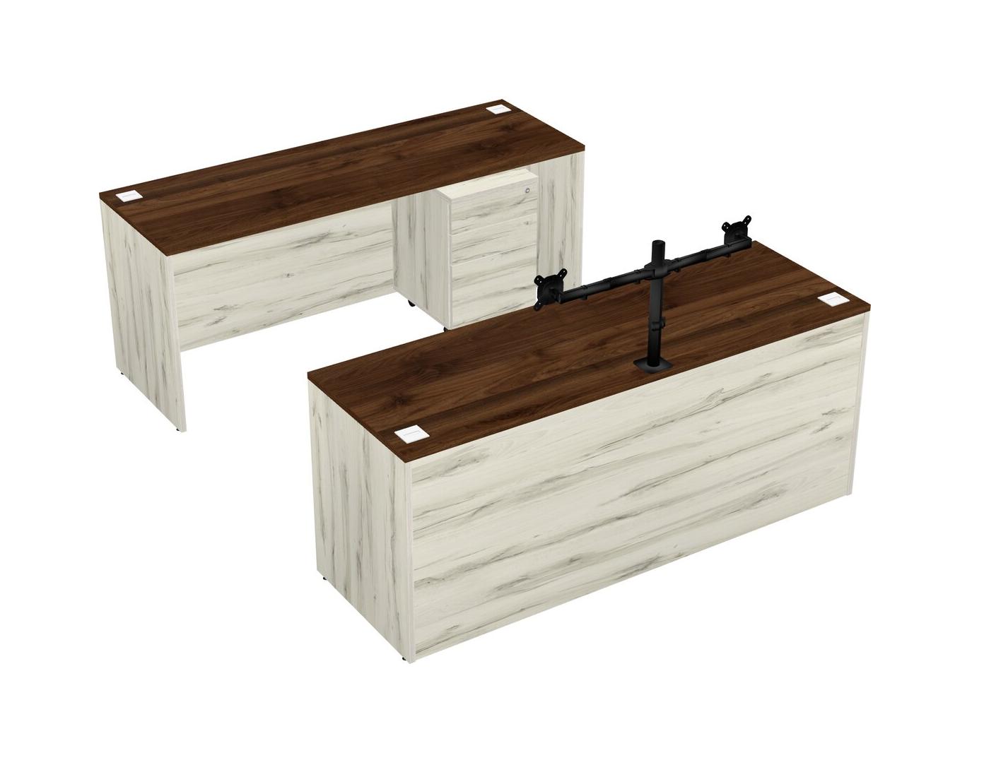 Office Parallel Desk Credenza Desk + Wooden Mobile Drawers + Monitor Arm (double Arms)