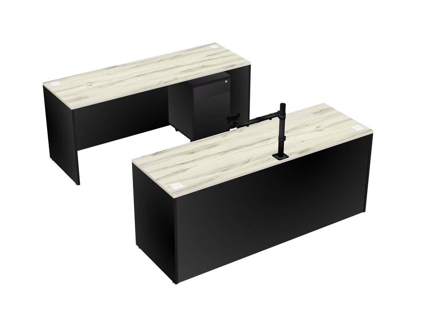 Office Parallel Desk Credenza Desk + Wooden Mobile Drawers + Monitor Arm (single Arm)