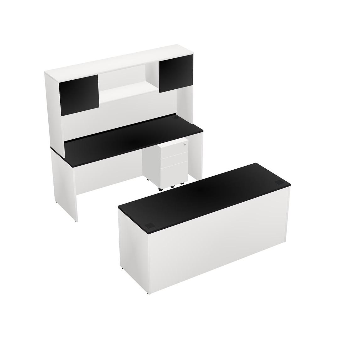 Office Parallel Desk Credenza Desk + Wooden Mobile Drawers + Hutch