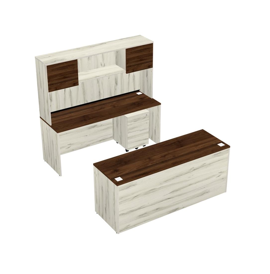 Office Parallel Desk Credenza Desk + Wooden Mobile Drawers + Hutch