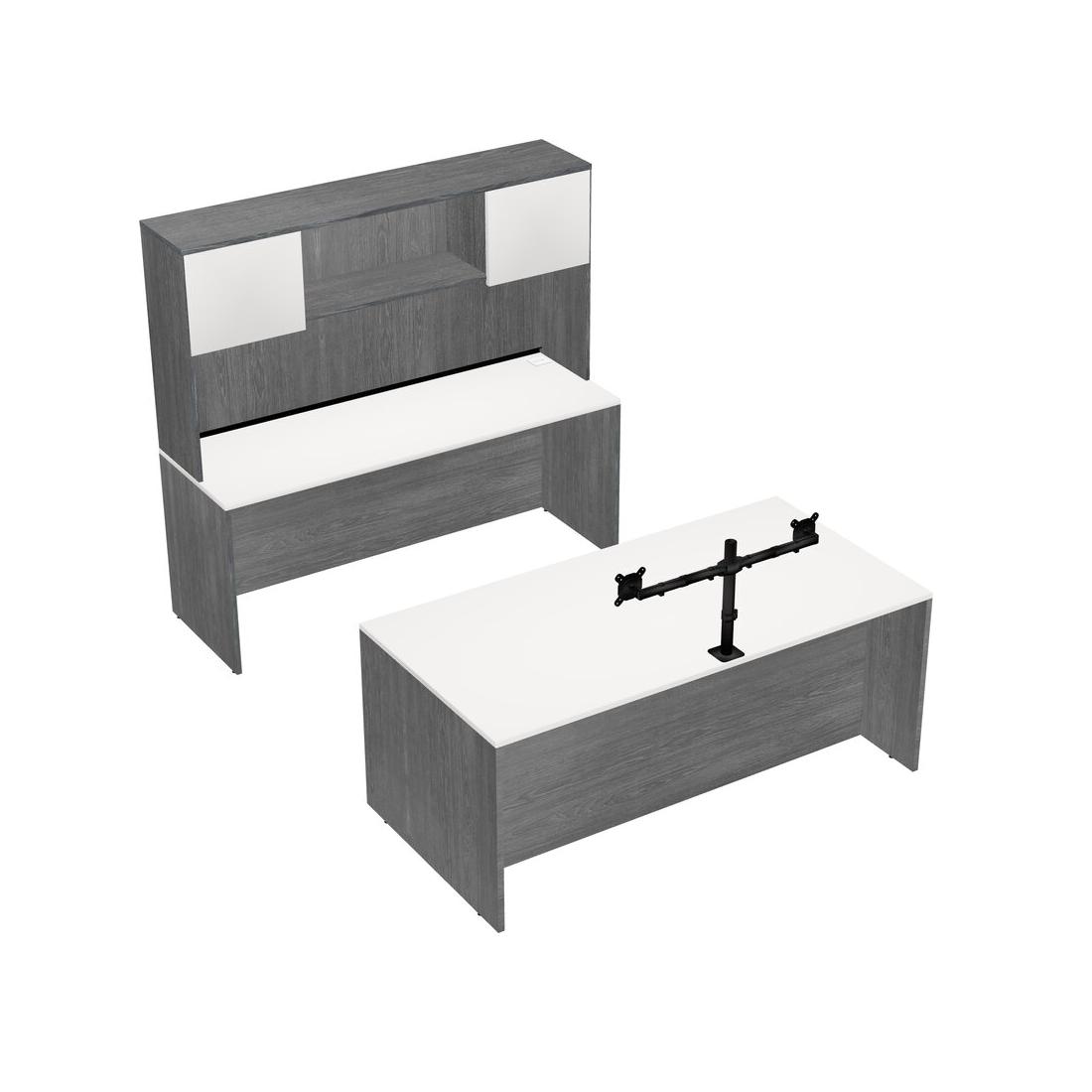Office Parallel Desk Credenza Desk + Hutch + Monitor Arm (double Arms)
