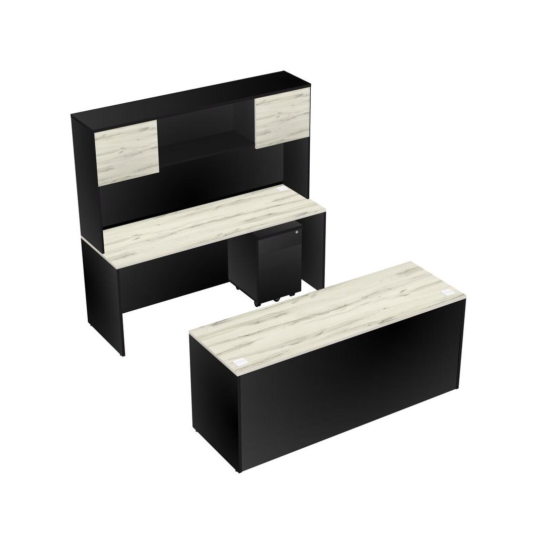 Office Parallel Desk Credenza Desk + Wooden Mobile Drawers + Hutch