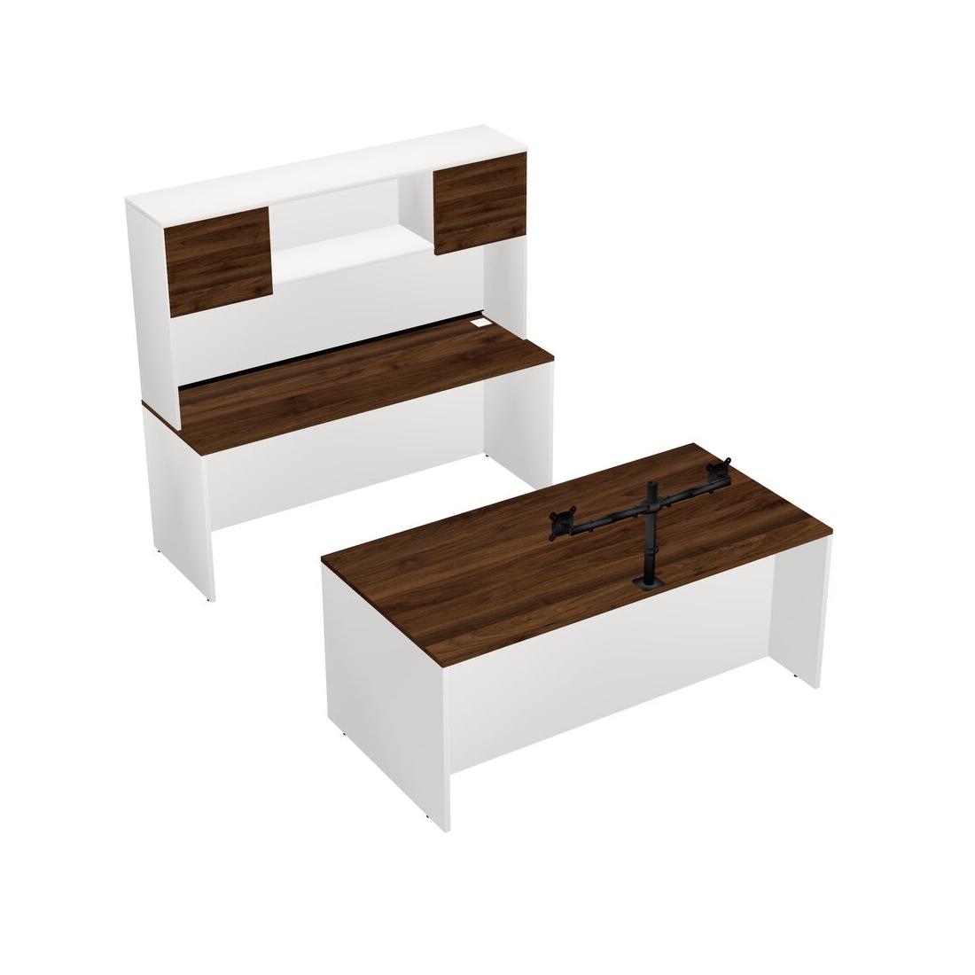 Office Parallel Desk Credenza Desk + Hutch + Monitor Arm (double Arms)