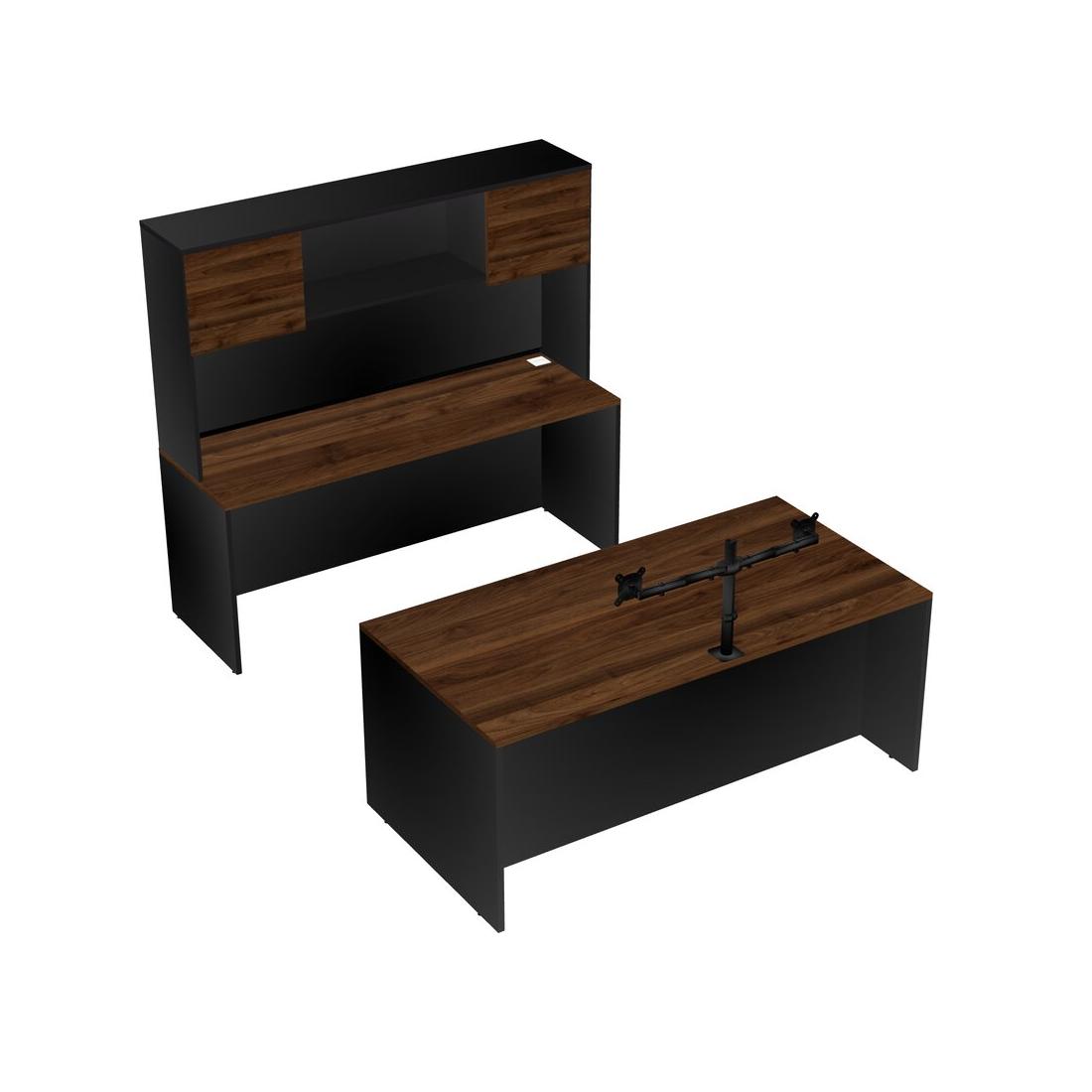 Office Parallel Desk Credenza Desk + Hutch + Monitor Arm (double Arms)