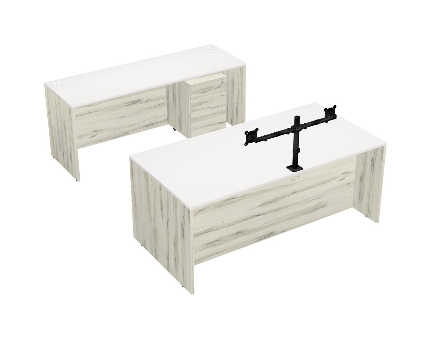 Office Parallel Desk Credenza Desk + Wooden Mobile Drawers + Monitor Arm (double Arms)