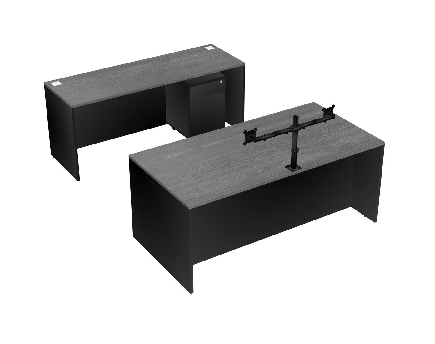 Office Parallel Desk Credenza Desk + Wooden Mobile Drawers + Monitor Arm (double Arms)