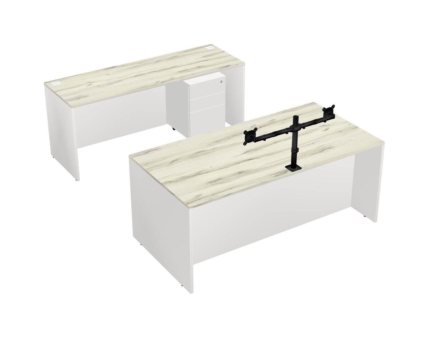 Office Parallel Desk Credenza Desk + Wooden Mobile Drawers + Monitor Arm (double Arms)