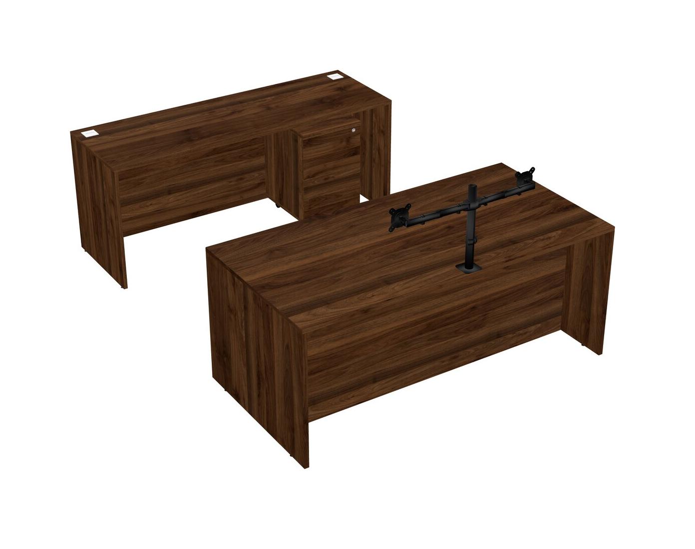 Office Parallel Desk Credenza Desk + Wooden Mobile Drawers + Monitor Arm (double Arms)