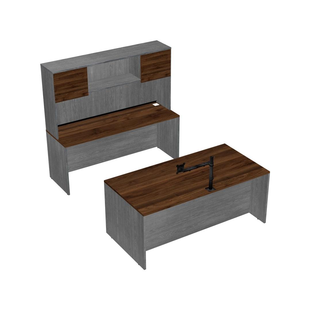 Office Parallel Desk Credenza Desk + Hutch + Monitor Arm (single Arm)