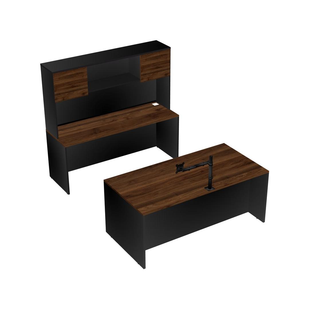 Office Parallel Desk Credenza Desk + Hutch + Monitor Arm (single Arm)