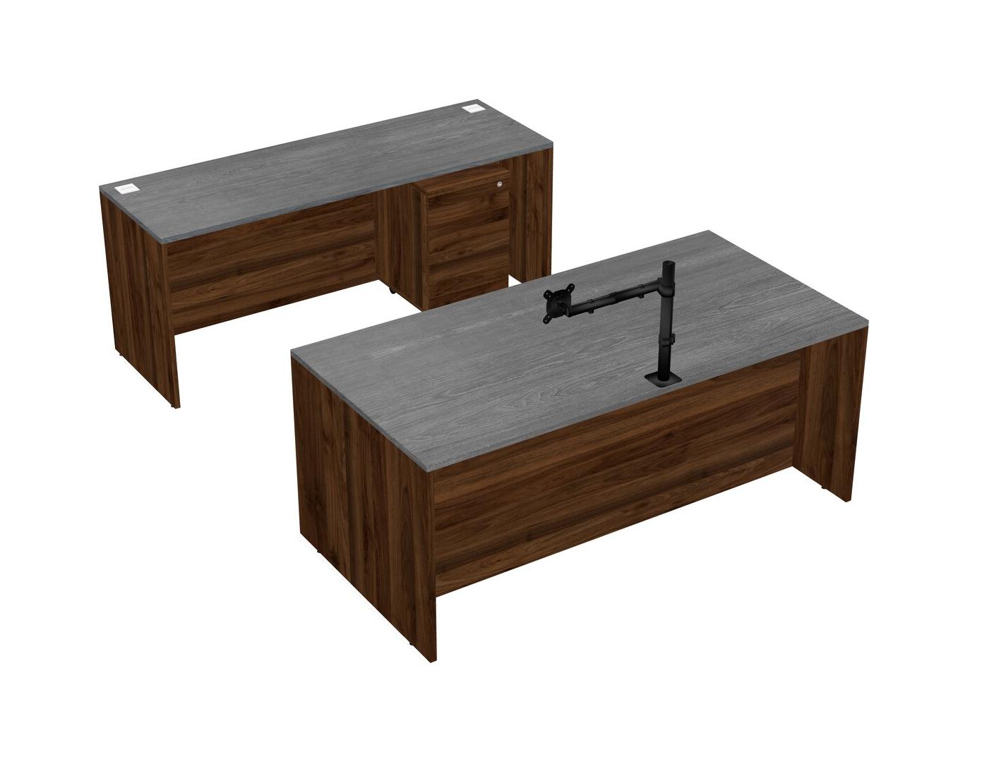 Office Parallel Desk Credenza Desk + Wooden Mobile Drawers + Monitor Arm (single Arm)