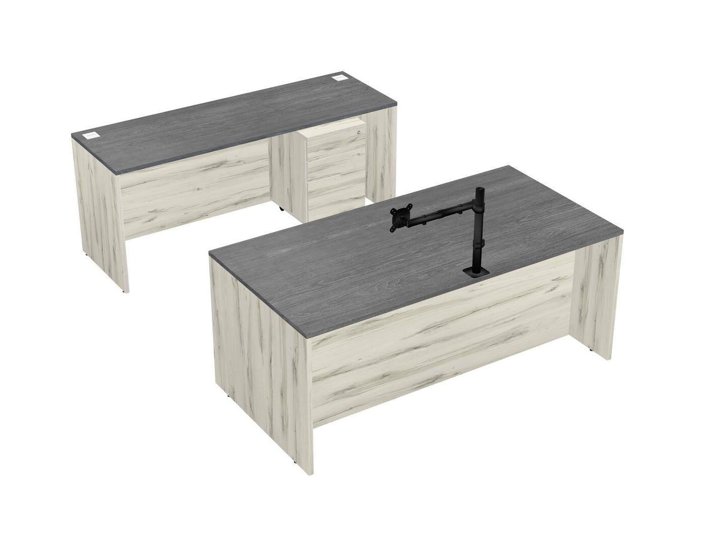 Office Parallel Desk Credenza Desk + Wooden Mobile Drawers + Monitor Arm (single Arm)