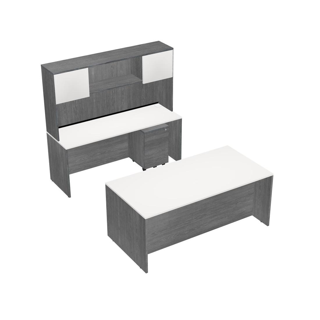 Office Parallel Desk Credenza Desk + Wooden Mobile Drawers + Hutch