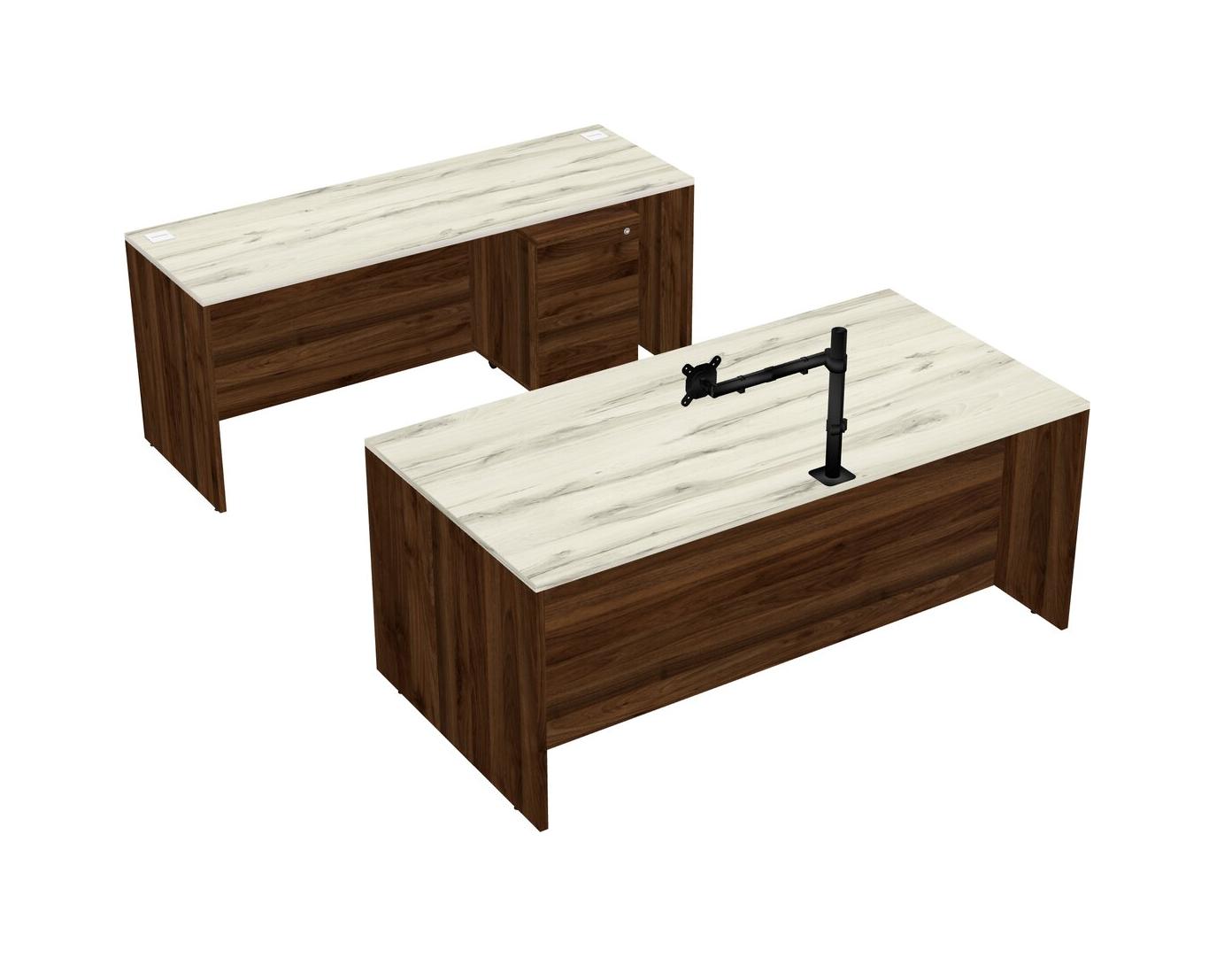 Office Parallel Desk Credenza Desk + Wooden Mobile Drawers + Monitor Arm (single Arm)