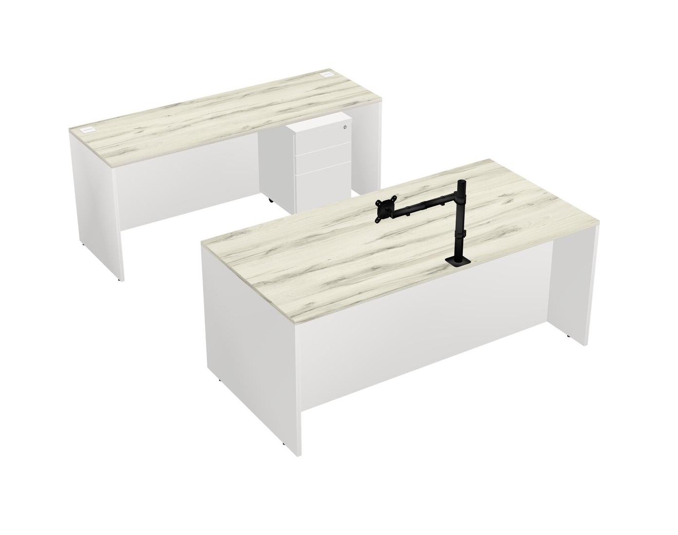 Office Parallel Desk Credenza Desk + Wooden Mobile Drawers + Monitor Arm (single Arm)