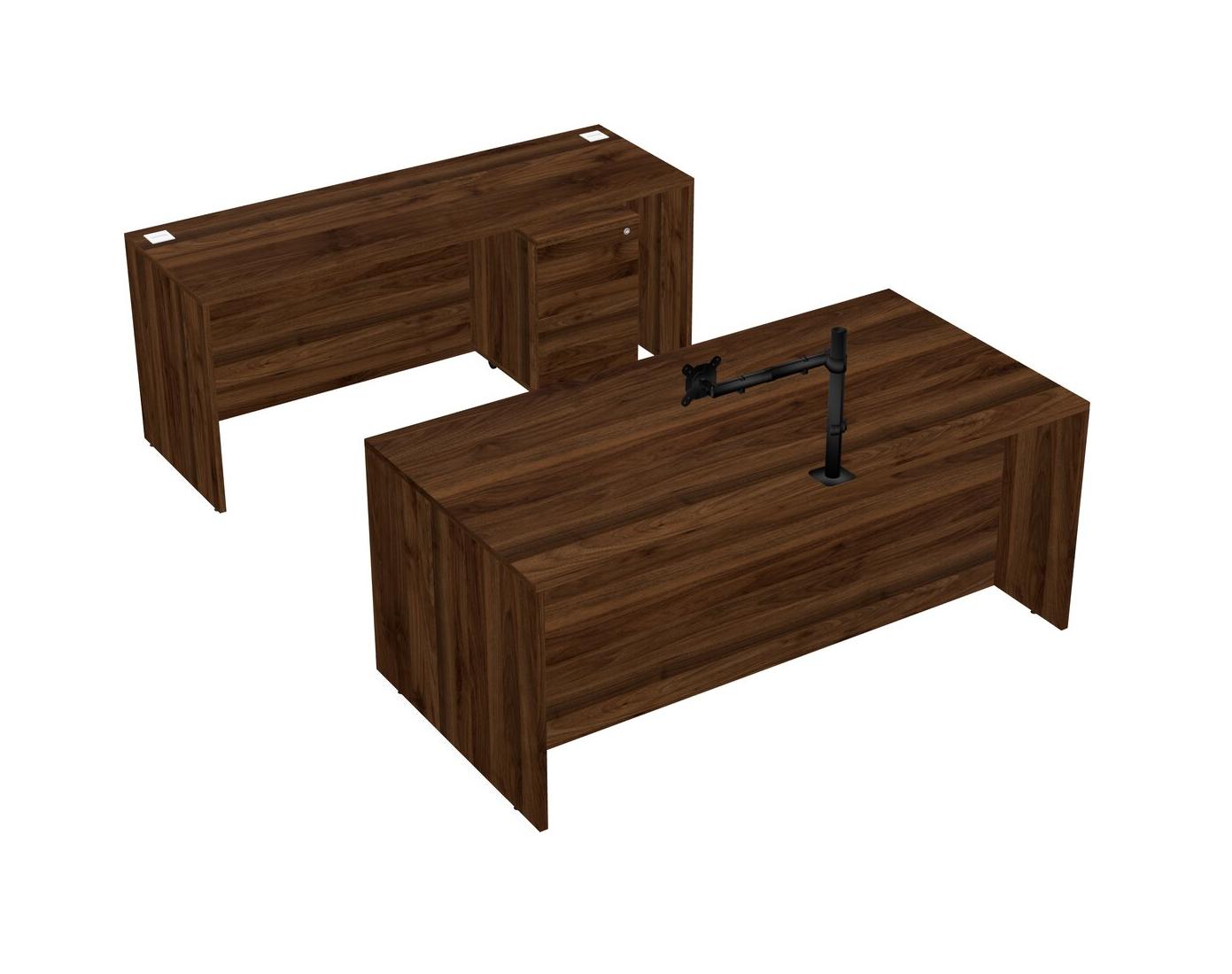 Office Parallel Desk Credenza Desk + Wooden Mobile Drawers + Monitor Arm (single Arm)