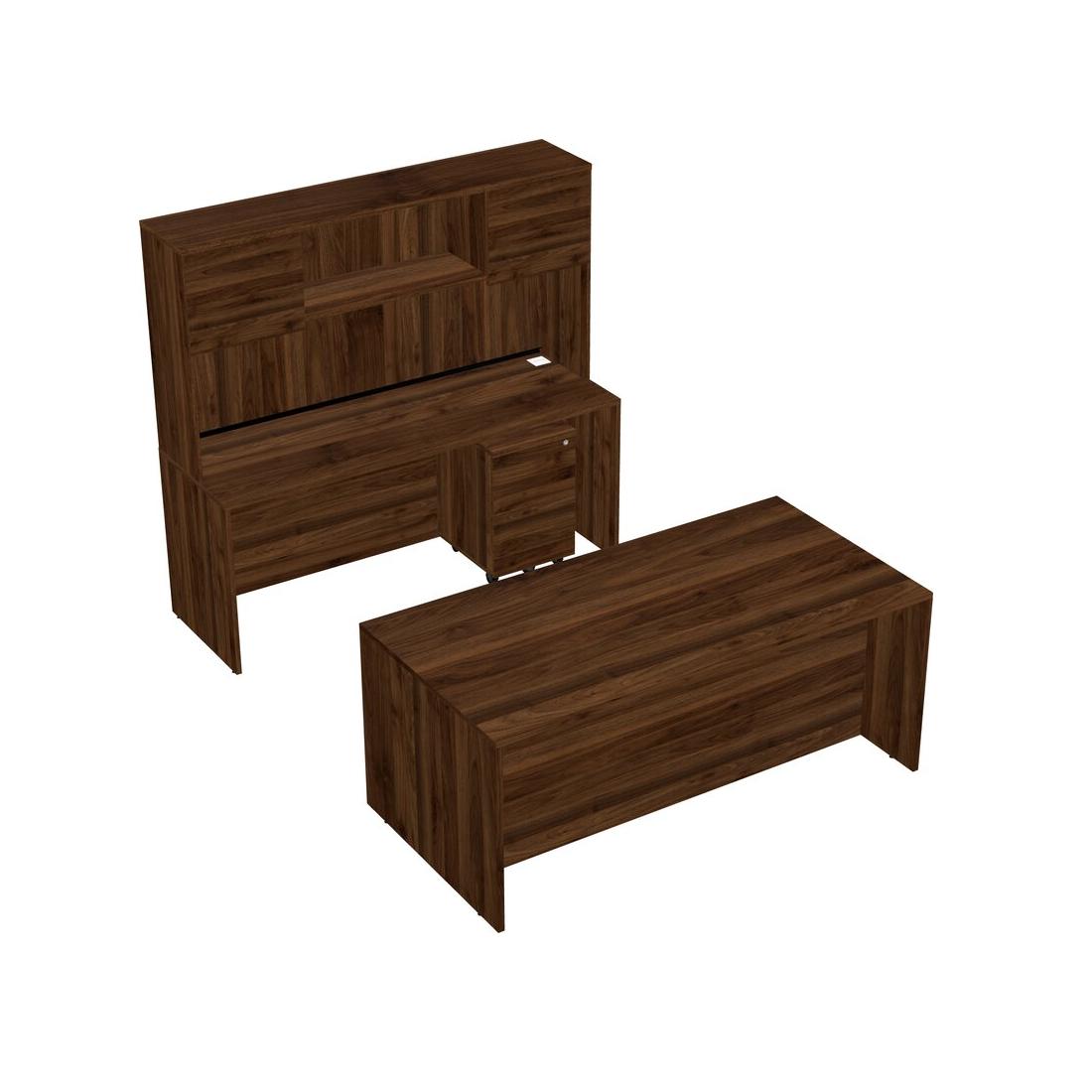 Office Parallel Desk Credenza Desk + Wooden Mobile Drawers + Hutch