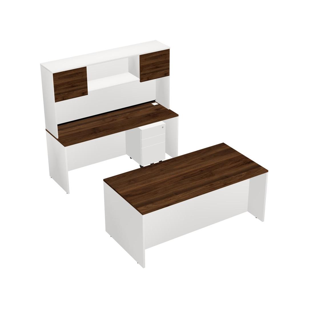 Office Parallel Desk Credenza Desk + Wooden Mobile Drawers + Hutch