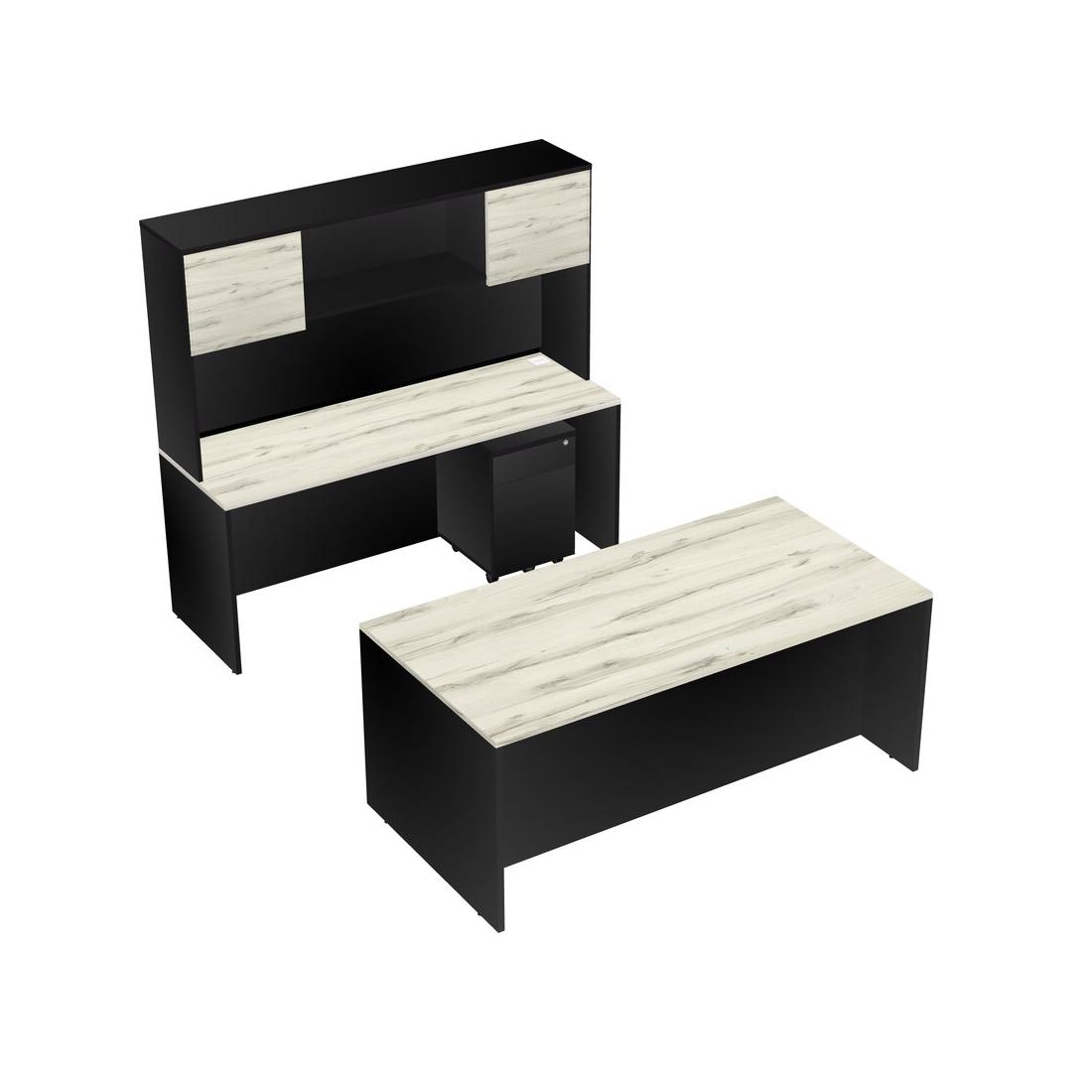 Office Parallel Desk Credenza Desk + Wooden Mobile Drawers + Hutch