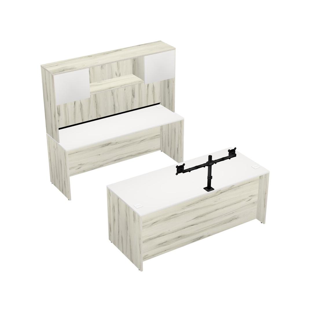 Office Parallel Desk Credenza Desk + Hutch + Monitor Arm (double Arms)