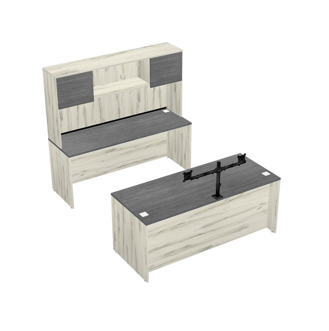Office Parallel Desk Credenza Desk + Hutch + Monitor Arm (double Arms)