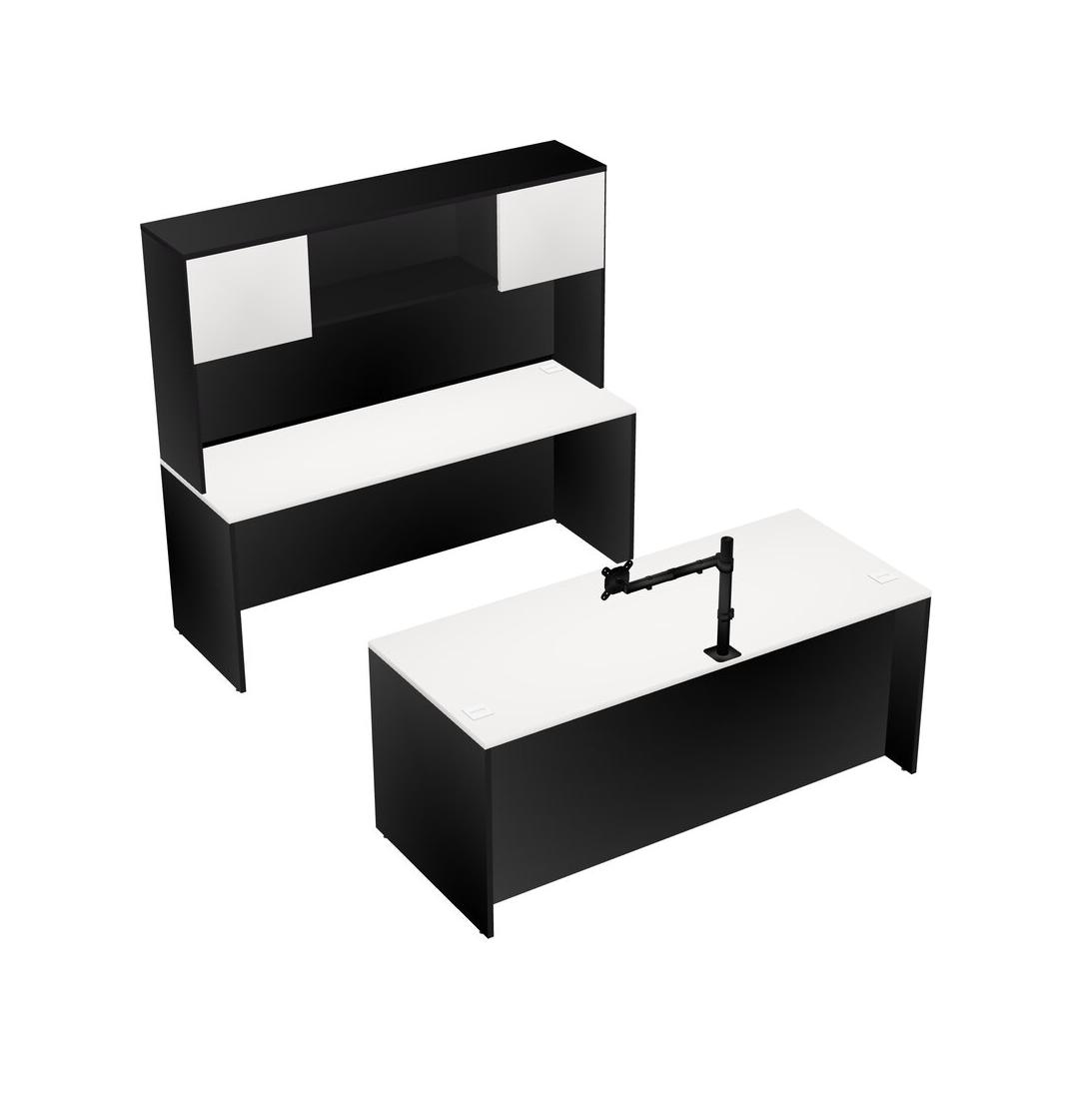 Office Parallel Desk Credenza Desk + Hutch + Monitor Arm (single Arm)